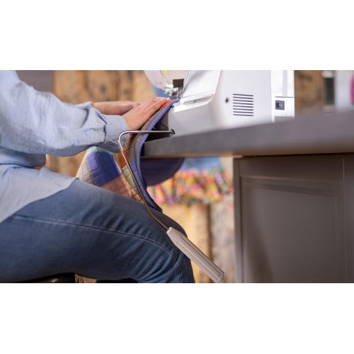Libérez vos mains en utilisant la genouillère pour relever/abaisser le pied de biche. Idéal pour travailler sur de grands ouvrages tels que les quilts ou les grandes pièces de tissu.