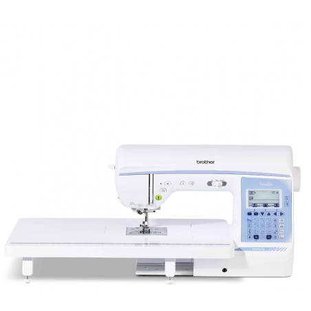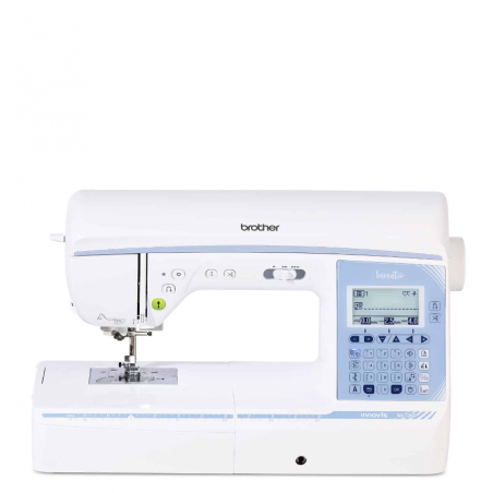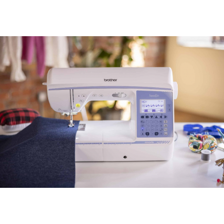 Découvrez la Brother NV1350, la nouveauté 2025 de la gamme Inventio : profitez d’un grand espace de travail de 21 cm, d’un écran LCD couleur intuitif de 8,9 cm et d’une vitesse jusqu’à 850 ppm. Bénéficiez de 182 points, 10 boutonnières automatiques, 5 alphabets et de la technologie SFDS à 7 griffes pour des résultats parfaits sur tous tissus.Coupe-fil automatique, genouillère et fonctionnalités créatives assurent un confort professionnel et des finitions impeccables.