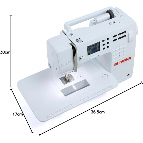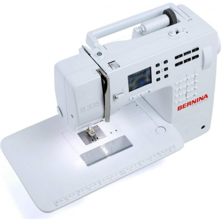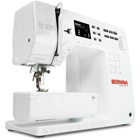 La machine à coudre électronique 335 de la série 3 de Bernina conviendra aux couturiers fans de la marque, pour une couture du quotidien. C'est une machine compacte avec nombre de points fantaisies et pratiques. Le réglage de la pression du pied de biche (nouveauté), le port USB pour les mises à jour et le programme d'aide intégré sur l'écran tactile couleur sont intéressants. La genouillère est en option.